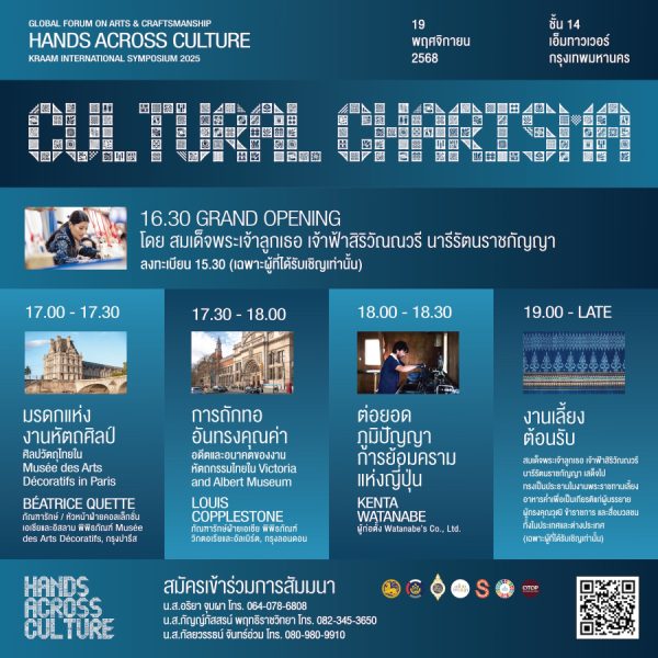 กรมการพัฒนาชุมชน ขอเชิญผู้สนใจเข้าร่วมงาน “Kraam International Symposium 2025” เวทีระดับนานาชาติที่จัดขึ้นเพื่อสร้างการรับรู้และแลกเปลี่ยนองค์ความรู้เกี่ยวกับผ้าย้อมคราม งานสิ่งทอ และภูมิปัญญาหัตถกรรมของไทย ผ่านการสนทนา ฟอรัมนักคิด การนำเสนอผลงานสร้างสรรค์ และกิจกรรมพบปะเครือข่ายสร้างสรรค์จากทั้งในประเทศและต่างประเทศ อันจะนำไปสู่การพัฒนาผลิตภัณฑ์ผ้าไทยให้ตอบโจทย์ตลาดสากลและผลักดัน “ครามไทยสู่ความเป็นเมืองครามโลก” โดยงานสัมมนาวิชาการระดับนานาชาติครั้งนี้ จะจัดขึ้นระหว่างวันที่ 19 – 22 พฤศจิกายน 2568 ณ ชั้น 14 เอ็มทาวเวอร์ กรุงเทพมหานคร