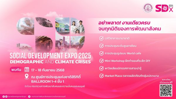 PR NEWS พม. จัดงานใหญ่ “SDx 2025” เชิญทุกคน ร่วมแก้โจทย์ใหญ่ “วิกฤตซ้อนวิกฤต : โครงสร้างประชากรและสภาพภูมิอากาศ” วันที่ 17–18 ก.ย.นี้ ณ ศูนย์ฯ สิริกิติ์ admin กันยายน 13, 2025 กรุงเทพฯ- กระทรวงกา... Read More