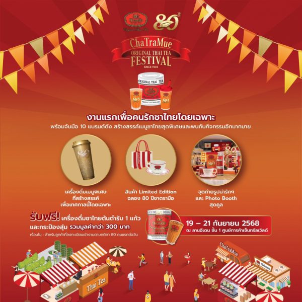 PR NEWS ฉลองใหญ่! 80 ปีชาตรามือ จัดงาน “ChaTraMue Original Thai Tea Festival” งานแรกเพื่อคนรักชาไทยโดยเฉพาะ พร้อมจับมือ 10 แบรนด์ดังสร้างสรรค์เมนูชาไทยสุดพิเศษ admin กันยายน 16, 2025 “ชาตรามือ” (ChaTraMu... Read More