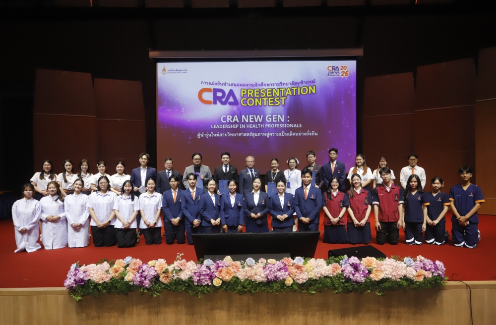 ราชวิทยาลัยจุฬาภรณ์ จัดการประกวด CRA Presentation Contest การแข่งขันนำเสนอผลงานของนักศึกษาราชวิทยาลัยจุฬาภรณ์ ภายใต้โครงการ CRA Job Fair & Education 2026 นิทรรศการแนะแนวอาชีพและการศึกษาต่อ สำหรับนักศึกษาราชวิทยาลัยจุฬาภรณ์ ระดับปริญญาบัณฑิต จำนวน 11 ทีม เข้าร่วมประกวด ภายใต้แนวความคิด CRA New Gen : Leadership in Health Professional ผู้นำรุ่นใหม่สายวิทยาศาสตร์สุขภาพ สู่ความเป็นเลิศอย่างยั่งยืน ณ หอประชุม Auditorium อาคารวิทยาลัยแพทยศาสตร์ศรีสวางควัฒน ราชวิทยาลัยจุฬาภรณ์ เขตหลักสี่ กรุงเทพมหานคร