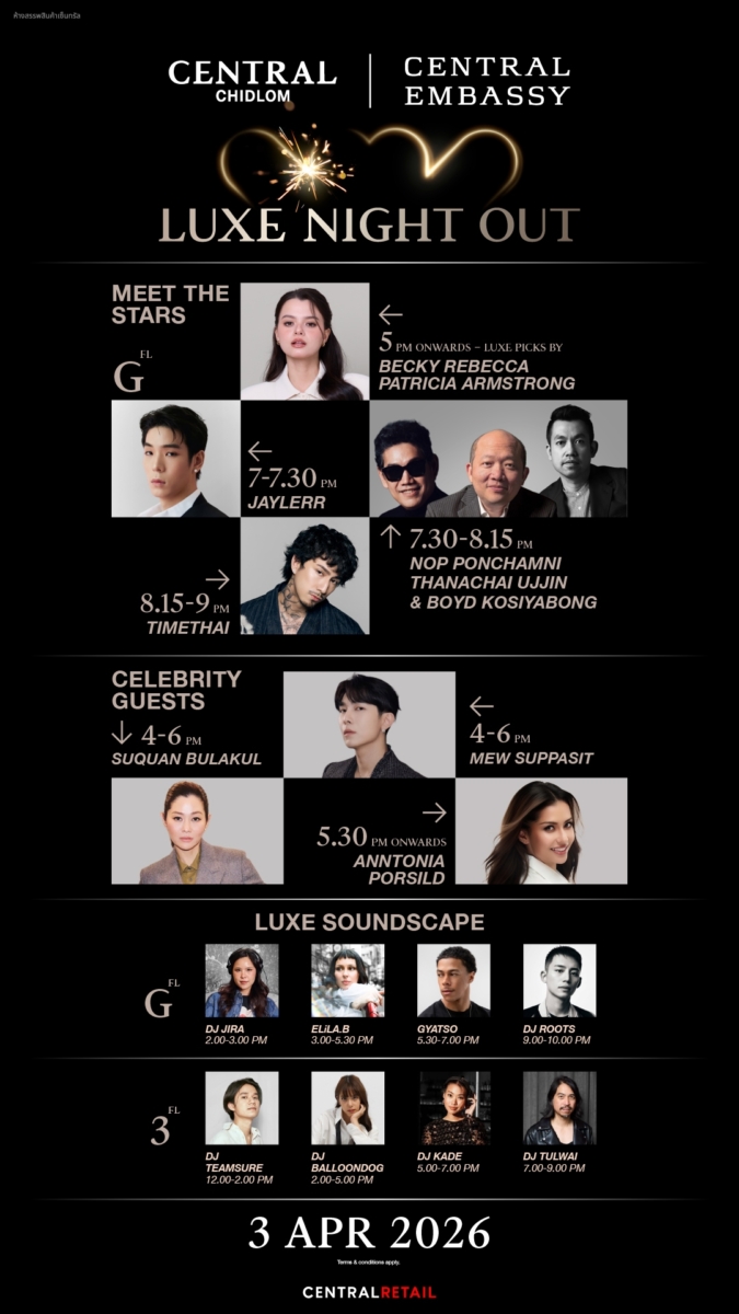 5 เหตุผลที่คุณต้องมาสัมผัสงาน “CENTRAL LUXE NIGHT OUT” ค่ำคืนที่แฟชั่น ไลฟ์สไตล์ และดนตรี ถูกถ่ายทอดเป็นประสบการณ์เหนือระดับอย่างมีเอกลักษณ์ ใจกลางกรุงเทพฯ